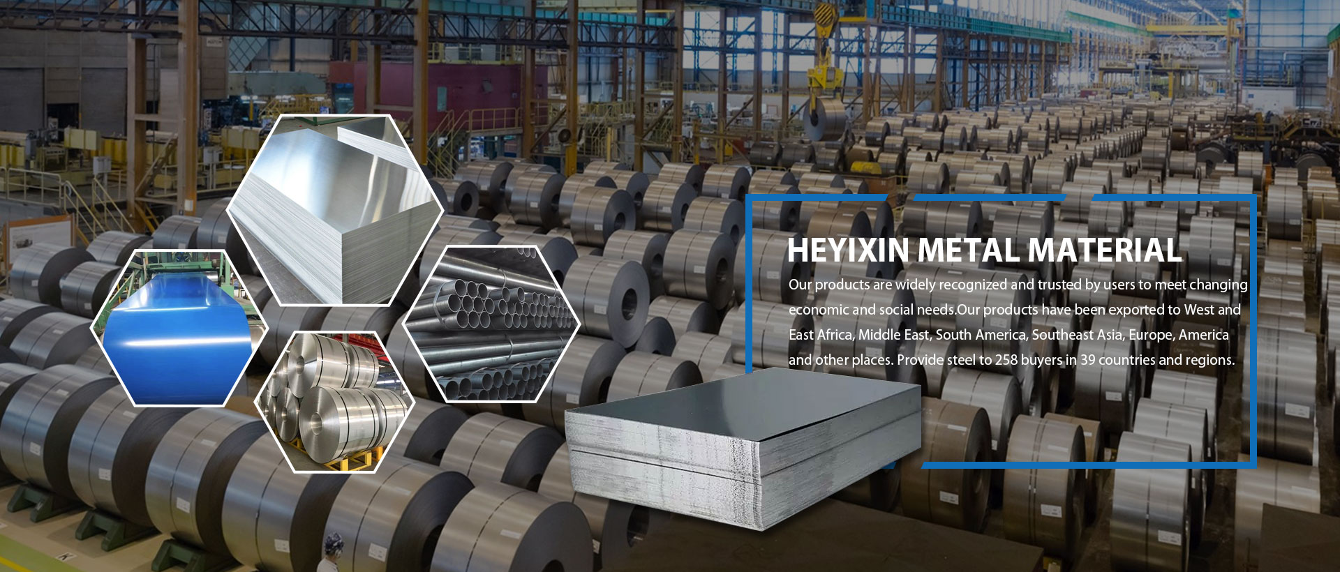 Shandong Heyixin Metal Material Co., Ltd. is located in Liaocheng City, Shandong Province, the beautiful Jiangbei Water City, adjacent to Tianjin and Qingdao, with convenient transportation. It has been focusing on the manufacture and distribution of metal products for many years. Our main products are steel bars, pipes, coils, seamless steel pipes, steel beams, aluminum coils, color-coated steel coils, galvanized coils, galvanized steel pipes, steel plates and other related metal products.
